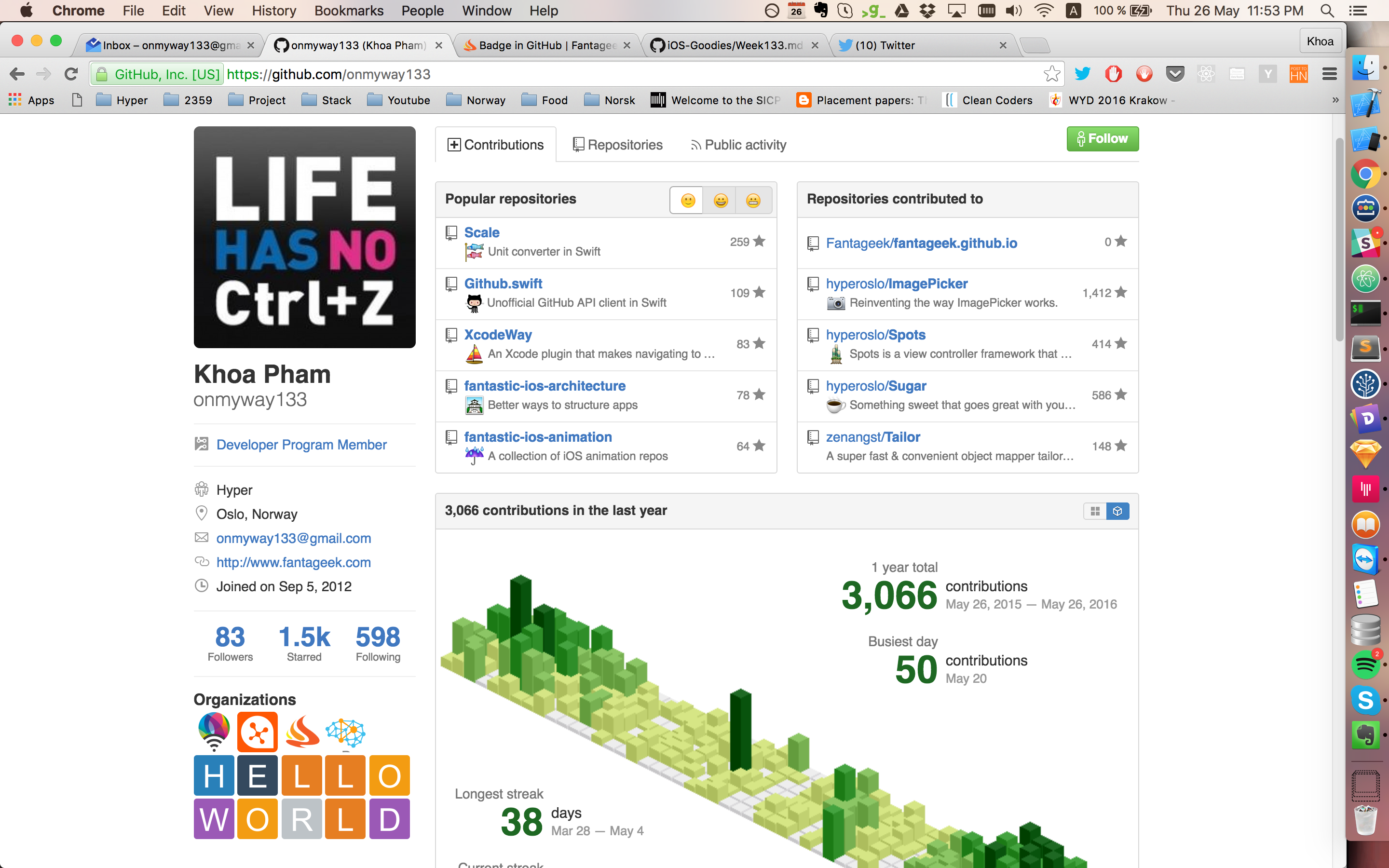 This is what shown on my GitHub profile https://github.com/onmyway133